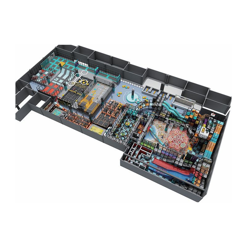 Mae hwn yn barc difyrion dan do trochi wedi'i adeiladu o amgylch gofodau fertigol aml-lefel, sy'n cynnig-profiad sbectrwm llawn o archwilio + gweithgaredd corfforol + hamdden. Gan integreiddio atyniadau craidd fel trampolinau, rhwydi enfys, pyllau peli, cyrsiau antur, a{5}}sleids uchder uchel, mae wedi'i gynllunio'n fanwl gywir ar gyfer plant 2-12 oed ac ymwelwyr teuluol, gan greu cyrchfan fywiog lle mae rhyddhau ynni yn cwrdd ag archwilio chwareus.